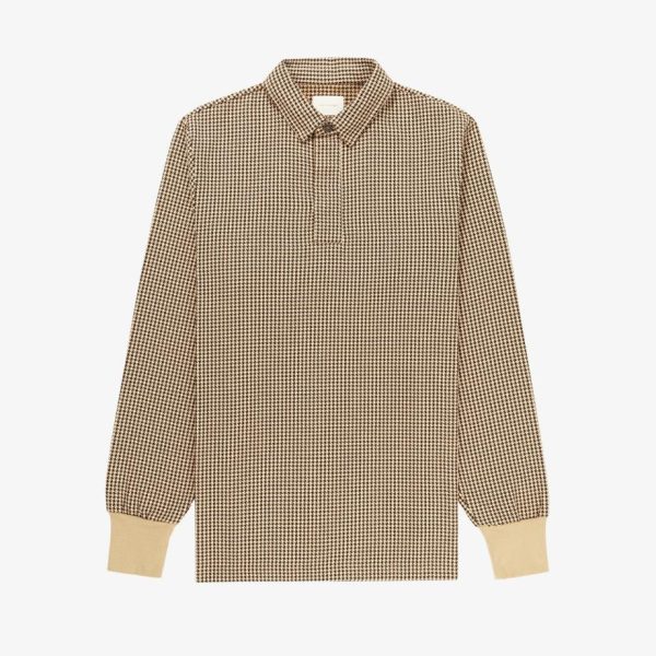 • Brown & khaki houndstooth long-sleeve rugby